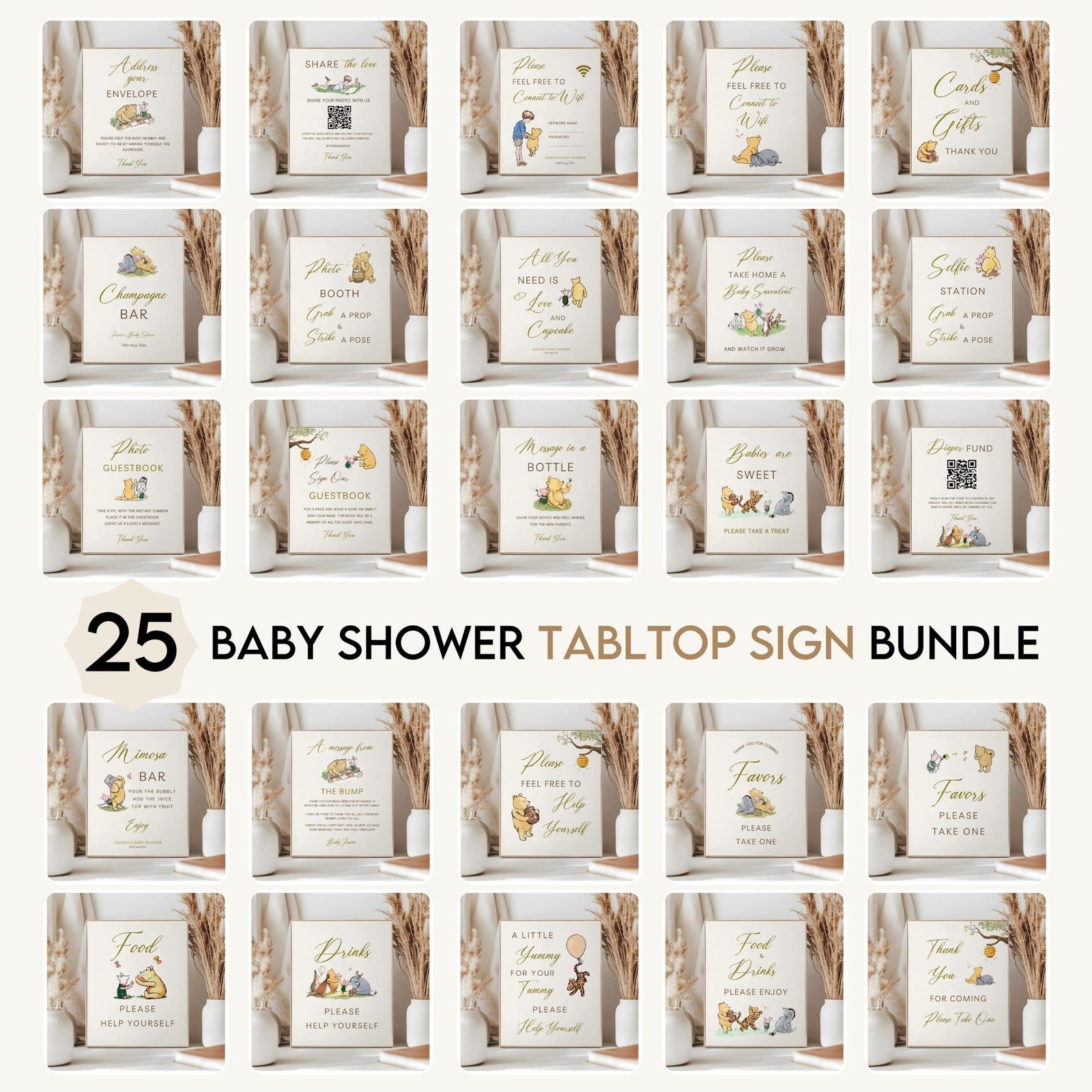 • Classic Winnie The Pooh Baby Shower Signs, Bundle, Printable Editable Sign Set Template, Baby Shower Decor, Instant Download #CC5POOH