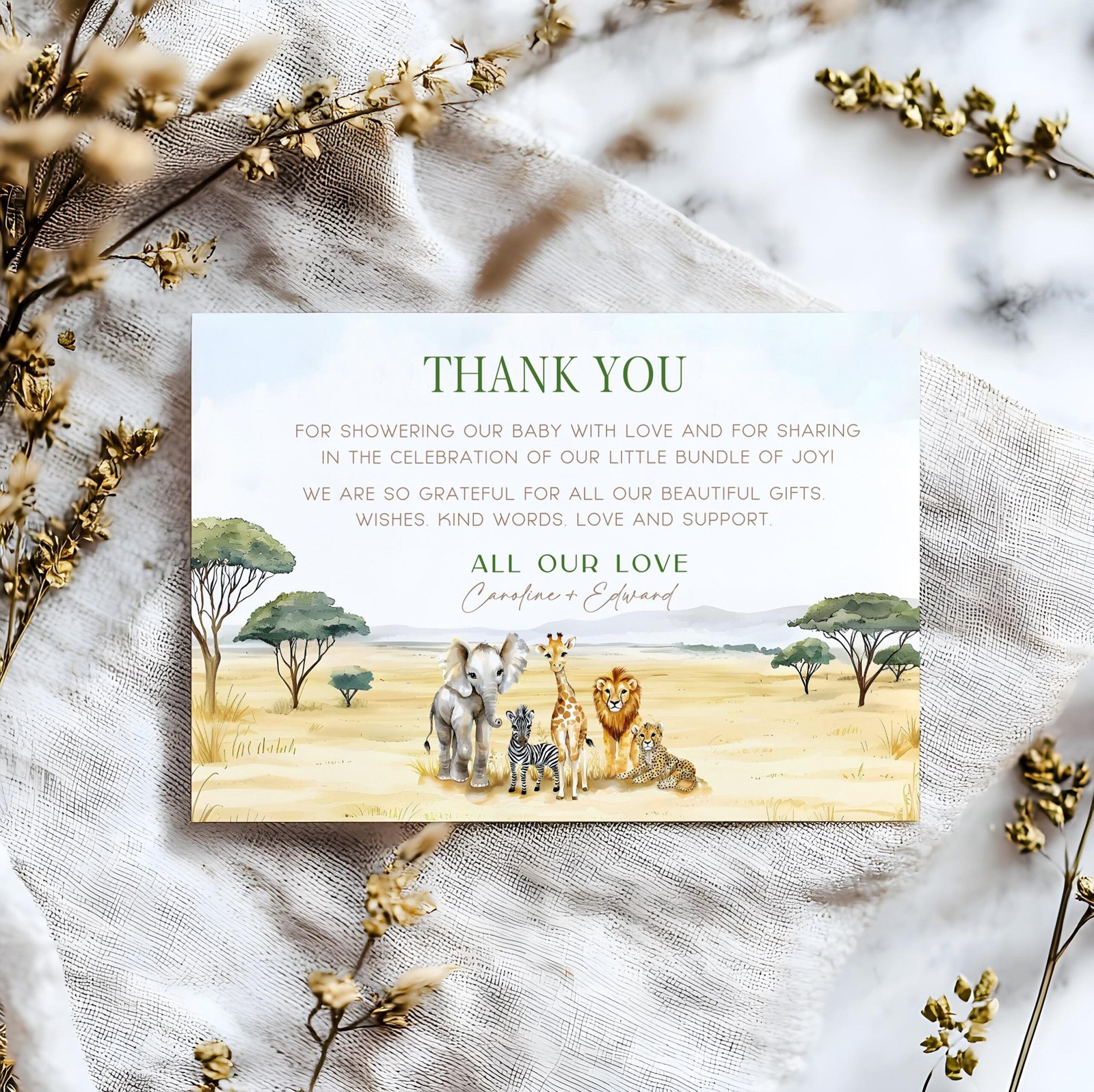 editable thank you card, safari baby shower, jungle thank you card, printable thank you, DIY baby shower thanks, Canva thank you template, instant download thank you, jungle safari shower thanks, safari animal thank you, wild one baby shower, african safari thank you, baby shower thank you card, digital thank you card, editable Canva template, safari baby thank, jungle animal card, thank you card download, baby thank you printable, customizable thank you card, safari theme party, animal thank you note, safari baby printables, jungle theme baby shower, wild animal thank you, editable jungle card, safari digital download, thank you cards baby, safari thank you DIY, baby shower card template, downloadable baby thanks